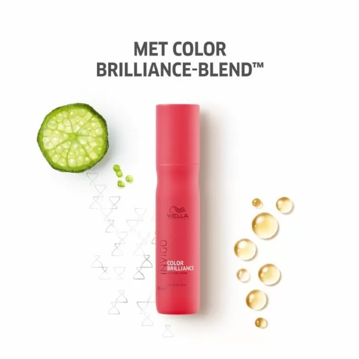Wella Invigo Color Brillance Miracle BB Spray biedt extra verzorging, bescherming en zachtheid aan het haar. De spray bevat de Wella Triple Blend Technologie. Deze technologie bevat ingrediënten zoals diamant- en champagnepoeder. Deze ingrediënten verzorgen gekleurd haar. Dit zorgt ervoor dat het haar beschermd is tegen uitdroging, warmte en kleurvervaging. De spray maakt het haar weer soepel zonder dat het haar vettig aanvoelt. Wella Invigo Color Brillance Miracle BB Spray bevat orchidee-extract, dit helpt tegen veroudering.