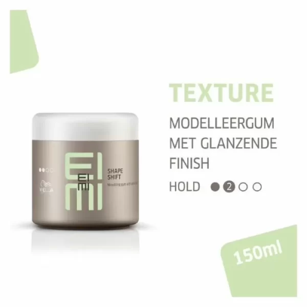Wella Professionals EIMI Shape Shift is een Moulding Gum met glanzende finish. Met behulp van deze modelleergum creëer je gemakkelijk een gedefinieerde of warrige look. Daarnaast biedt het je haar extra glans en UV-bescherming. Hold level 2.