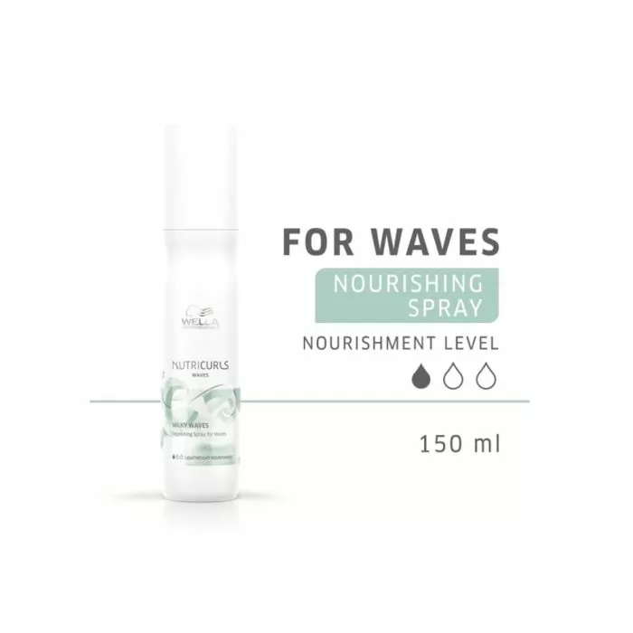 Wella Professionals Nutricurls Milky Waves is een verzachtende, leave-in spray met een melkachtige textuur die lichtgewicht voeding geeft en het haar beter handelbaar maakt. Voor zachte mooie golven. Verstuif over de lengte van vochtig haar.